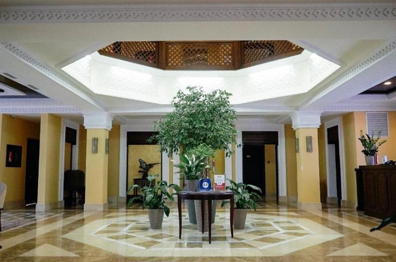 Все номера гостиницы оформлены в классическом стиле, мебель высокого качества. Все апартаменты оборудованы отдельной ванной комнатой, с гигиеническими средствами и встроенным феном. На территории работает wi-fi и спутниковое телевидение.